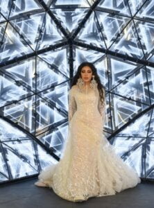 كما وثقت الفنانة مجموعة صور لإطلالتها بفستان عروس باللون العاجي عبر تويتر وقالت: ”إطلالتي في الليلة الماسية“، وهي الإطلالة التي كانت من تصميم نيكولا جبران من مجموعة شتاء وخريف 2023.