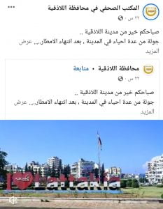 لتتبع ذلك المنشور، بمنشور آخر “صباحكم خير من مدينة اللاذقية، جولة من عدة احياء في المدينة ، بعد انتهاء الامطار بعدسة المكتب الصحفي في محافظة اللاذقية”.