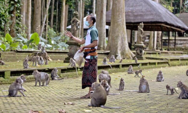 بعد أن تسبب غياب السياح في بالي في نقص موارد الغذاء التي كانت تصل للقرود التي تعيش هناك، اضطرت الحيوانات الجائعة لاقتحام عدد من القرى والمنازل بحثًا عن بعض الموز أو الفول السوداني.
