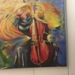 هكذا يرتبط اللون مع الموسيقى.. ويلتقي القوس مع الريشة، في لوحة “تشيلّو” للفنانة التشكيلية الجميلة سوسن بواب. التي أرادتها سيمفونية بصرية تصوّر ثورة الأنثى وجموحها فكرياً وجسدياً ونفسياً، إنما عبر جسد آلة التشيلو. حيث يتماهى جسد العازفة مع جسد الآلة الموسيقية، في توحد أقرب إلى الاحتدام.